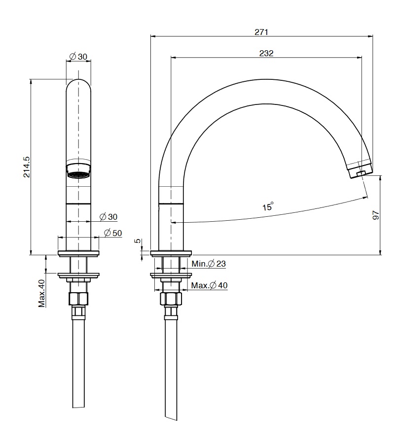 wysięg wylewki: 232 mm