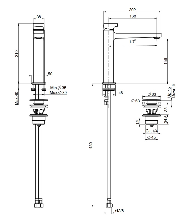 Carlo Frattini Next Bateria umywalkowa jednouchwytowa wysoka z korkiem Chrom F3931LNCR