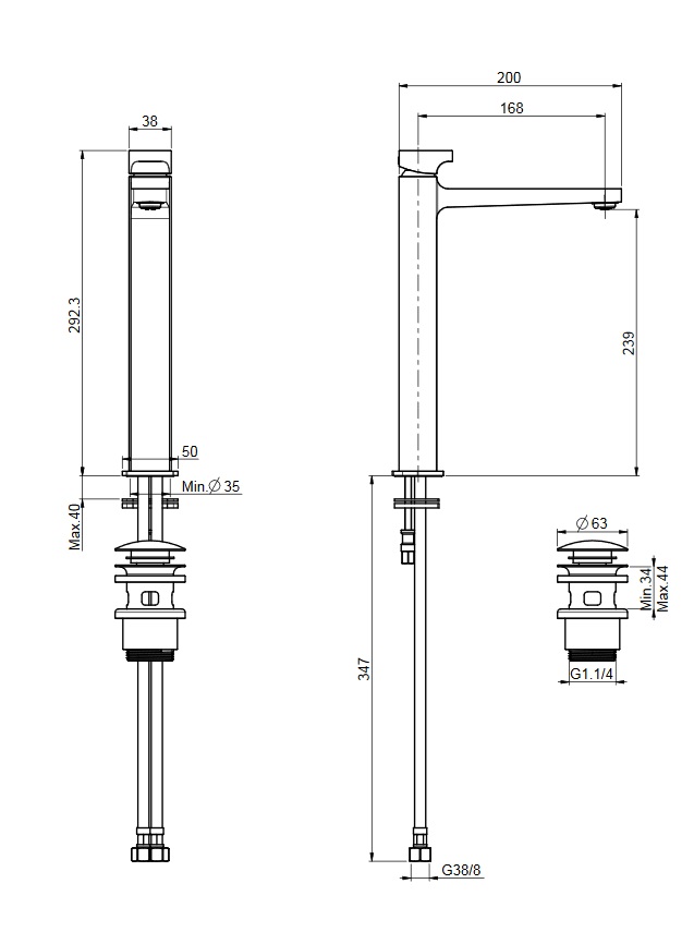 Carlo Frattini Next Bateria umywalkowa jednouchwytowa wysoka z korkiem Chrom F3931/HNCR