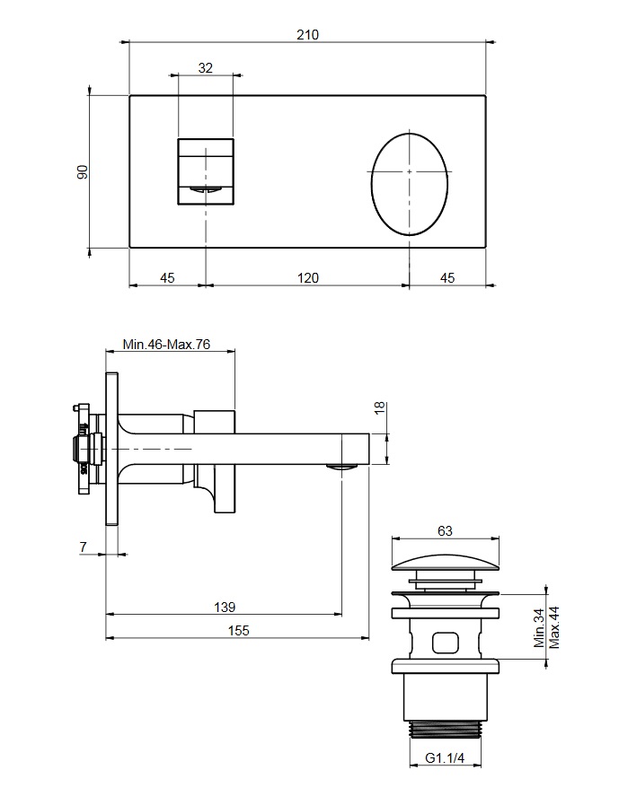 Carlo Frattini Next Bateria umywalkowa ścienna z korkiem Chrom F3951X5CR