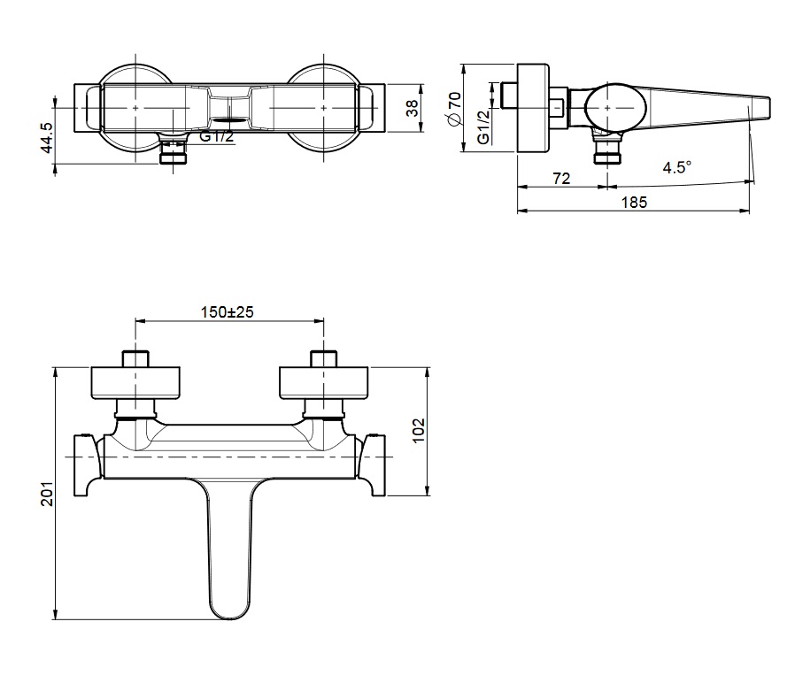 wysięg przyłącza natrysku: 72 mm