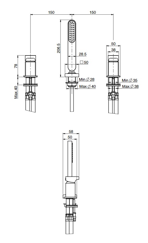 Carlo Frattini Next Bateria wannowa 3-otworowa Chrom F3944/1CR