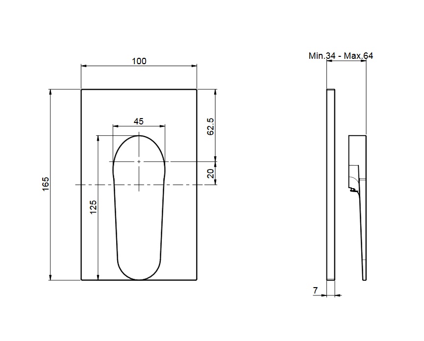 wysięg uchwytu: 34 - 64 mm