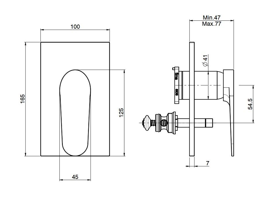 wysięg uchwytu: 47 - 77 mm