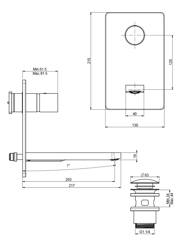 Carlo Frattini Nomos Go Bateria umywalkowa ścienna z korkiem Chrom F4201VLX5CR
