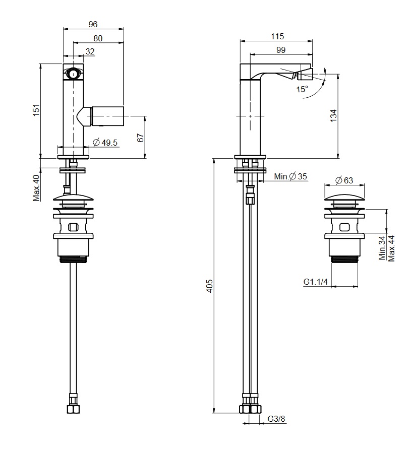 Carlo Frattini Nomos Go Bateria bidetowa jednouchwytowa Chrom F4162CR