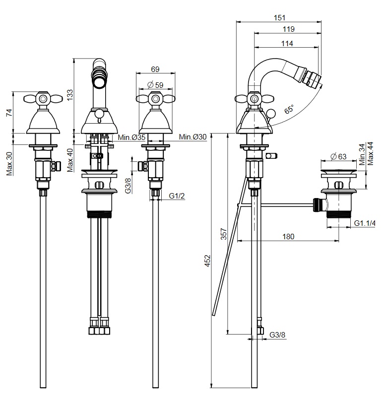 Carlo Frattini Olivia Bateria bidetowa 3-otworowa z automatycznym korkiem Chrom F5002CR