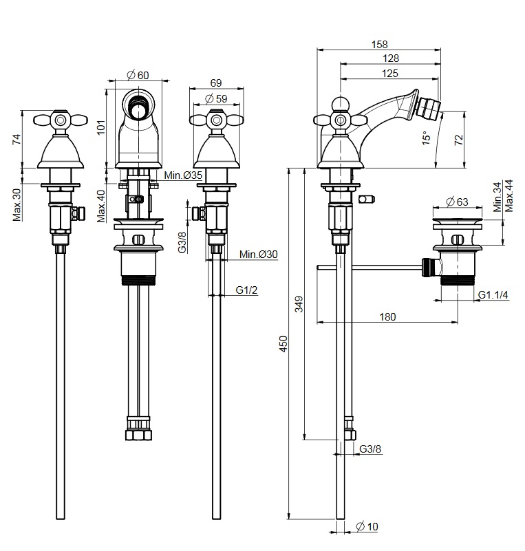 Carlo Frattini Olivia Bateria bidetowa 3-otworowa z automatycznym korkiem Chrom F5012CR