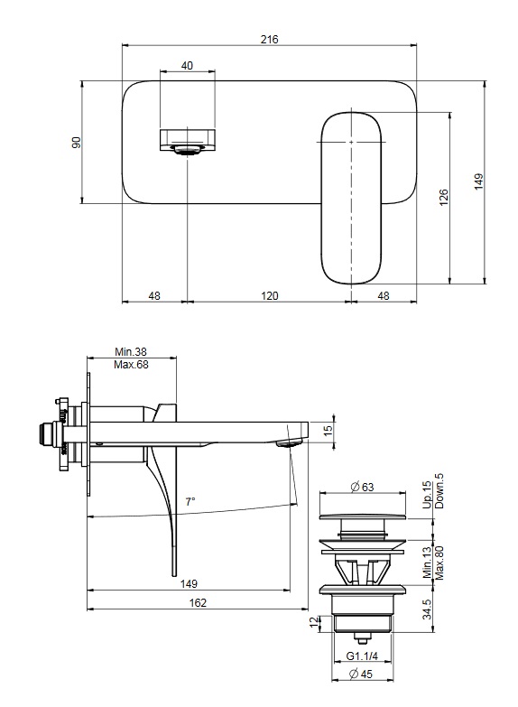 Carlo Frattini Quad Bateria umywalkowa ścienna Chrom F3741X5CR.WS