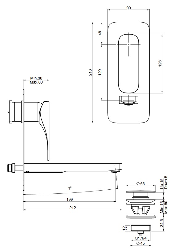 Carlo Frattini Quad Bateria umywalkowa ścienna Chrom F3741VLX5CR.WS