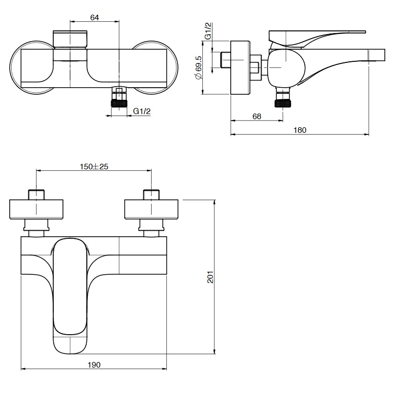 Carlo Frattini Quad Bateria wannowa ścienna bez zestawu natryskowego Chrom F3724/1CR