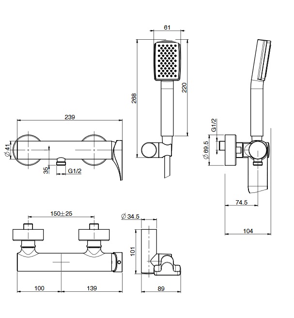 Carlo Frattini Quad Bateria natryskowa ścienna z zestawem natryskowym Chrom F3735CR