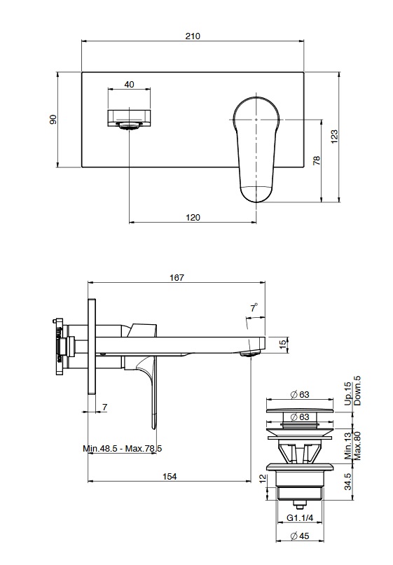 Carlo Frattini Serie 22 Bateria umywalkowa ścienna Chrom F3830X5CR