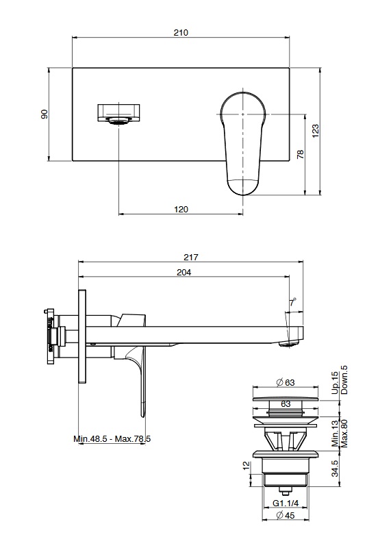 Carlo Frattini Serie 22 Bateria umywalkowa ścienna Chrom F3830LX5CR