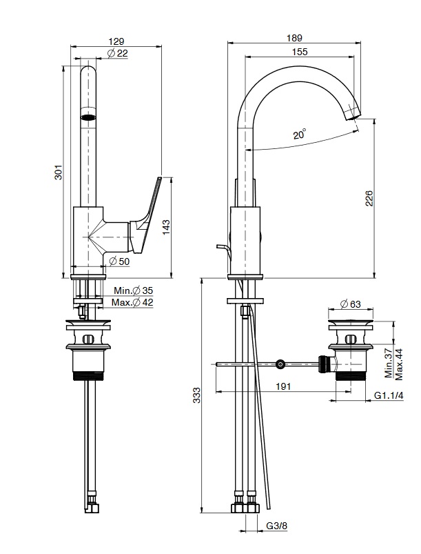 Carlo Frattini Serie 4 Bateria umywalkowa jednouchwytowa z korkiem Chrom F3781WCR