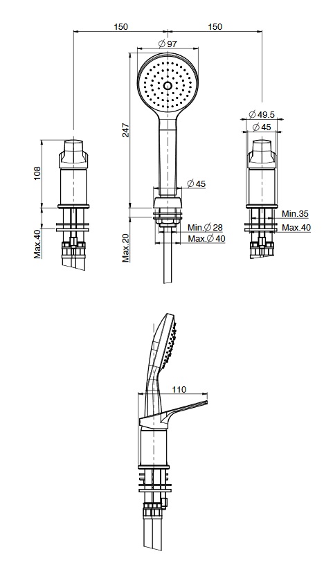 Carlo Frattini Serie 4 Bateria wannowa 3-otworowa Chrom F3784/1CR