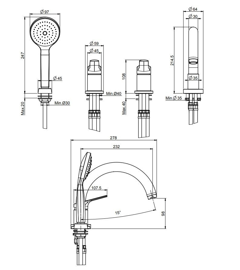 Carlo Frattini Serie 4 Bateria wannowa 4-otworowa Chrom F3784/4CR