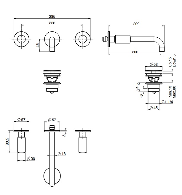 Carlo Frattini So Bateria umywalkowa 3-otworowa podtynkowa Chrom F3191L/5CR