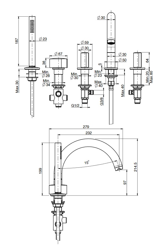 elastyczny wąż prysznicowyWymiary: