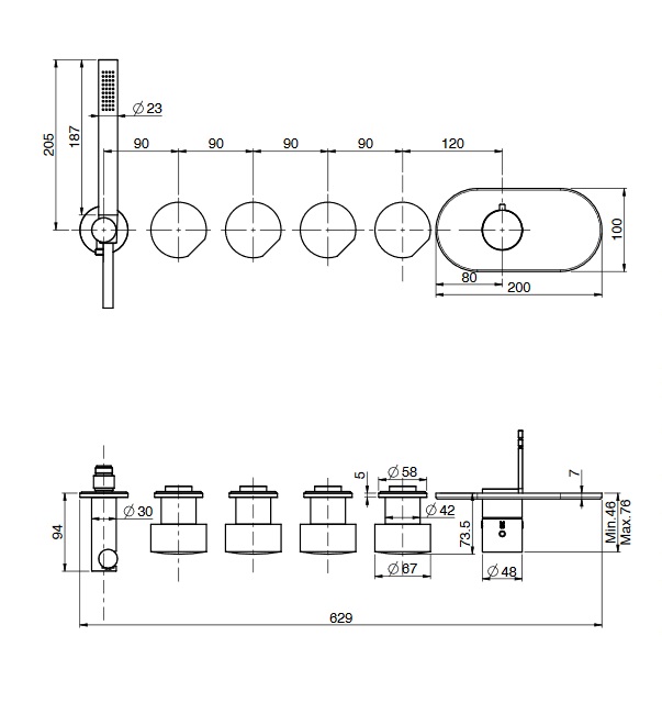 rozstaw otworów: 90 mm