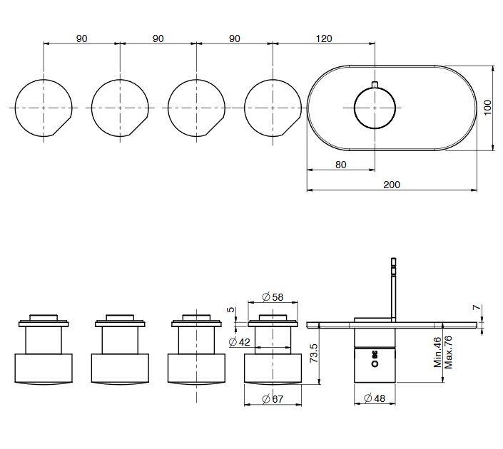wysięg uchwytu: 46 - 76 mm