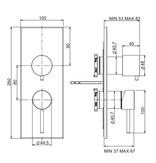 wysięg uchwytów: 53 - 83 mm