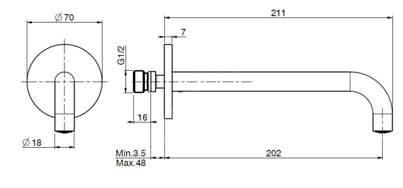 Carlo Frattini Spillo Steel Wylewka ścienna 211 mm Stal nierdzewna F2944INOX