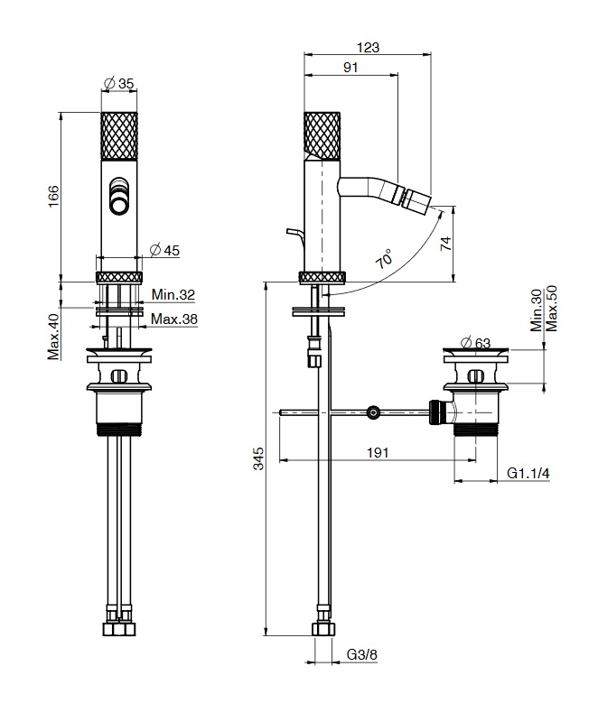 Carlo Frattini Spillo Tech Bateria bidetowa jednouchwytowa z korkiem automatycznym Chrom F3032XSVCR