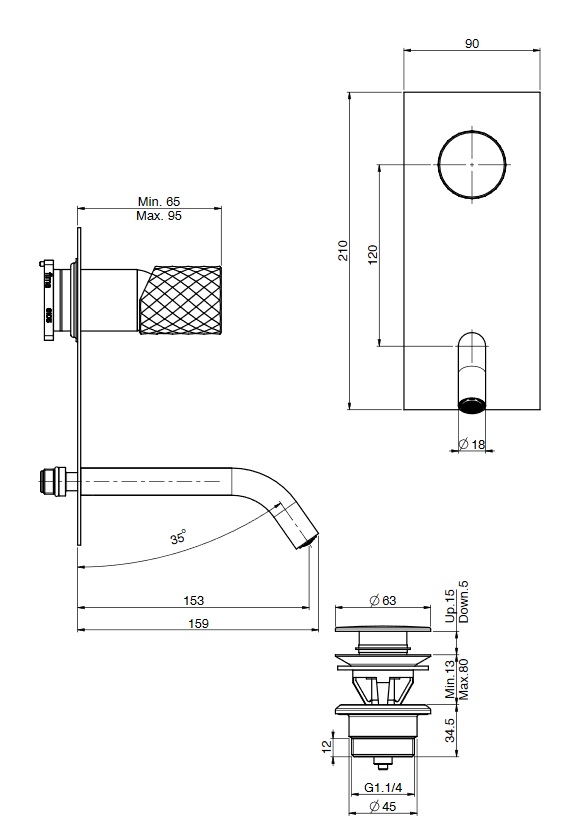 Carlo Frattini Spillo Tech Bateria umywalkowa ścienna z korkiem Chrom F3051VX5VCR