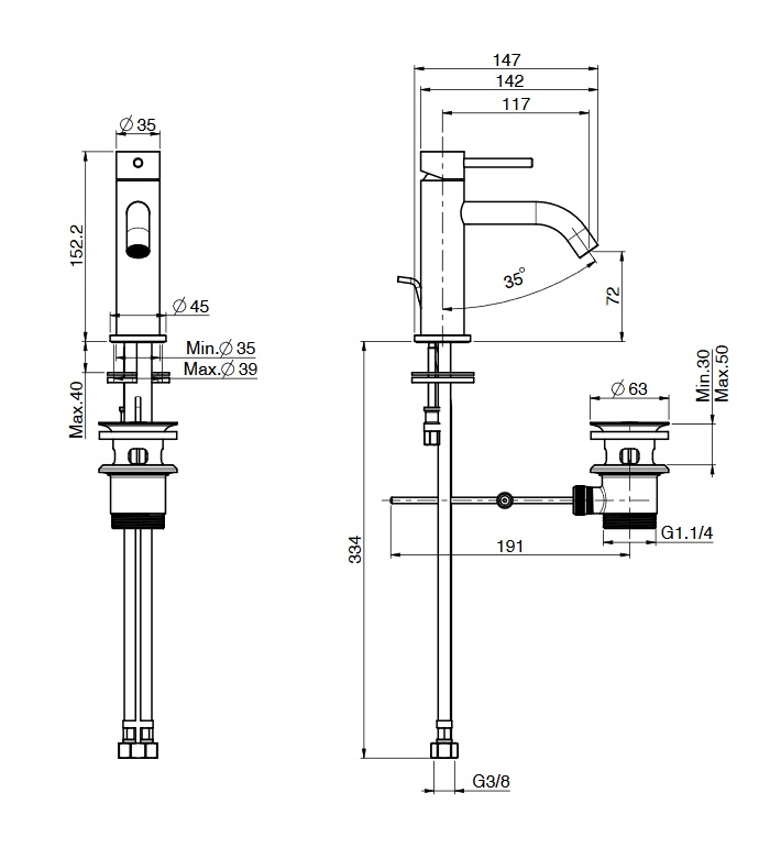 wysięg wylewki: 117 mm
