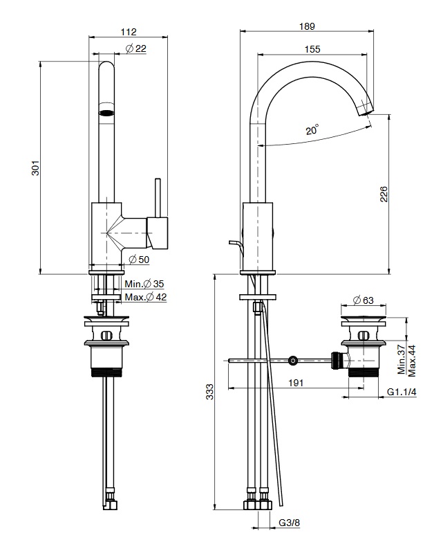 Carlo Frattini Spillo Up Bateria umywalkowa jednouchwytowa z korkiem automatycznym Chrom F3041CR