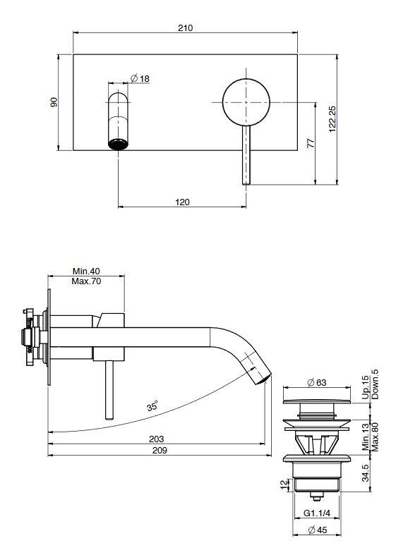 Carlo Frattini Spillo Up Bateria umywalkowa podtynkowa Chrom F3051LX5CR