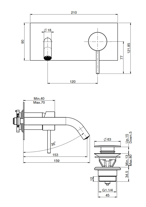 Carlo Frattini Spillo Up Bateria umywalkowa podtynkowa Chrom F3051X5CR