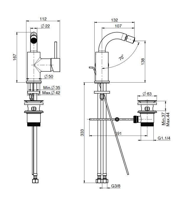 Carlo Frattini Spillo Up Bateria bidetowa jednouchwytowa z korkiem automatycznym Chrom F3042CR