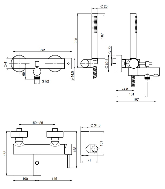 Carlo Frattini Spillo Up Bateria natryskowo-wannowa ścienna z zestawem natryskowym Chrom F3034CR