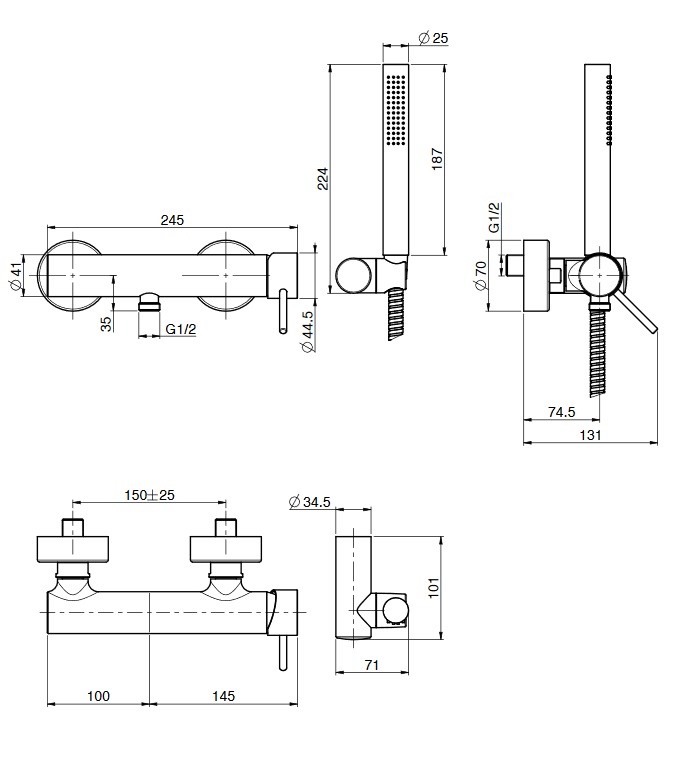 Carlo Frattini Spillo Up Bateria natryskowa ścienna Chrom F3035CR