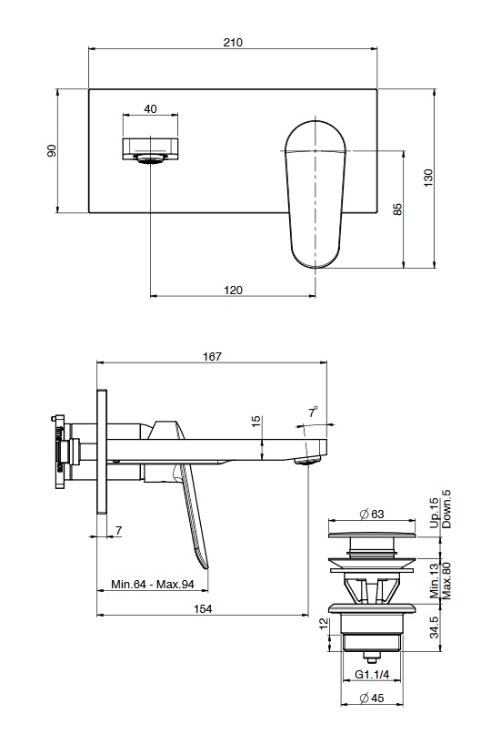 wysięg uchwytu: 64 - 94 mm