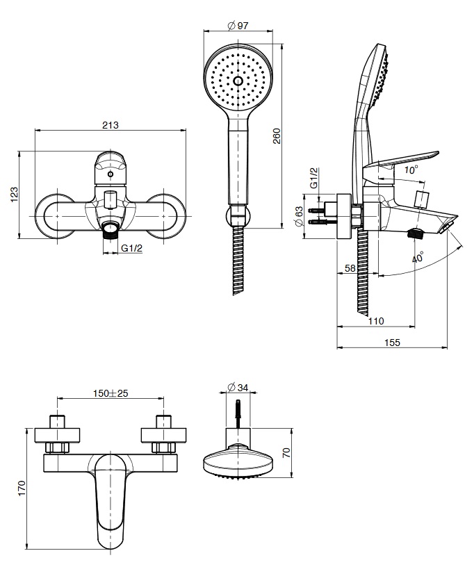 Carlo Frattini Spot Bateria wannowo-natryskowa z zestawem natryskowym Chrom F3004CR