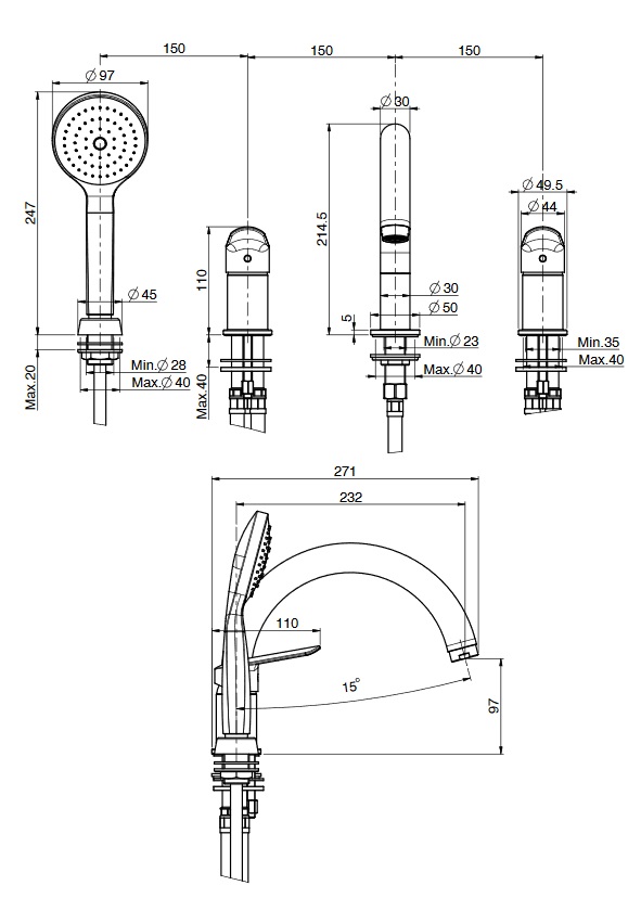 Carlo Frattini Spot Bateria wannowa 4-otworowa Chrom F3014CR