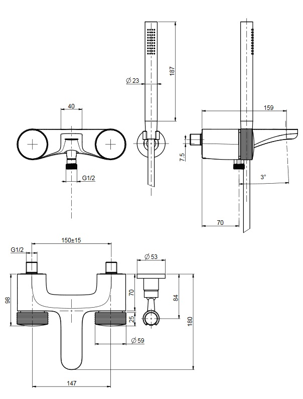 Carlo Frattini Texture Collection Bateria wannowo-natryskowa z zestawem natryskowym Chrom F5604VCR