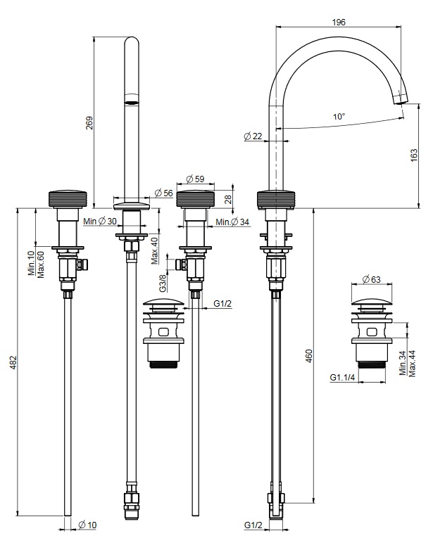 wysokość wylewki: 269 mm