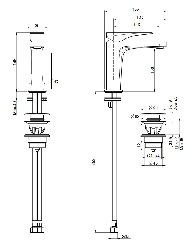 Carlo Frattini Zeta Bateria umywalkowa jednouchwytowa z korkiem Chrom F3961NCR