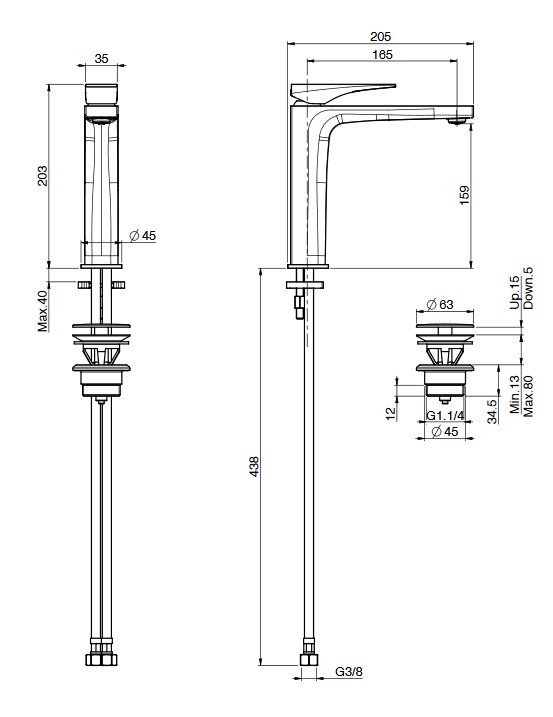 Carlo Frattini Zeta Bateria umywalkowa jednouchwytowa z korkiem Chrom F3961LNCR