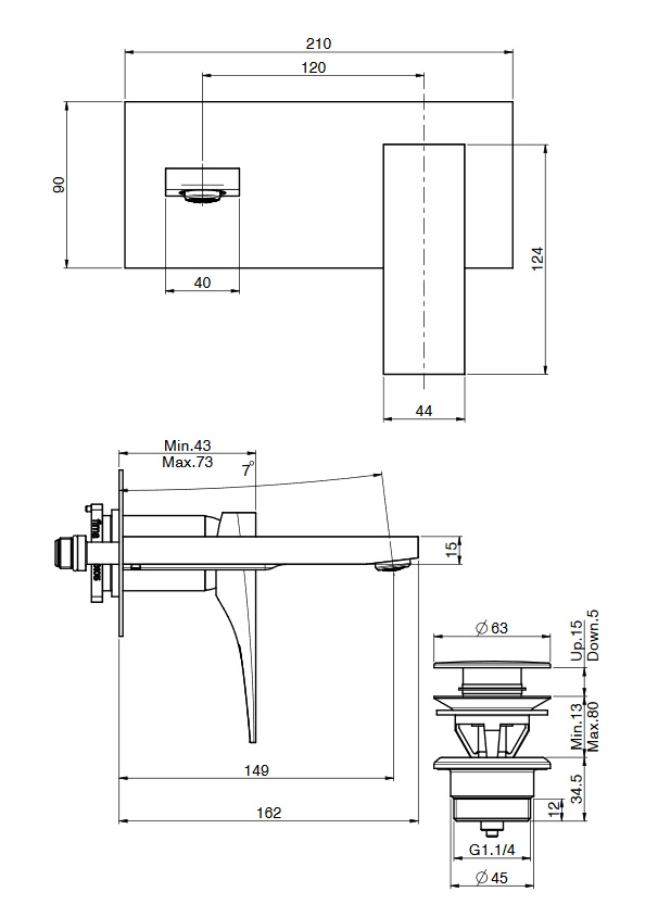 Carlo Frattini Zeta Bateria umywalkowa podtynkowa z korkiem Chrom F3971X5CR