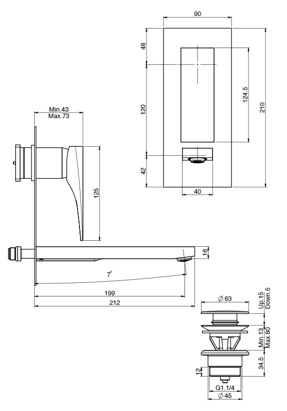 Carlo Frattini Zeta Bateria umywalkowa podtynkowa (pionowa) z korkiem Chrom F3971VLX5CR