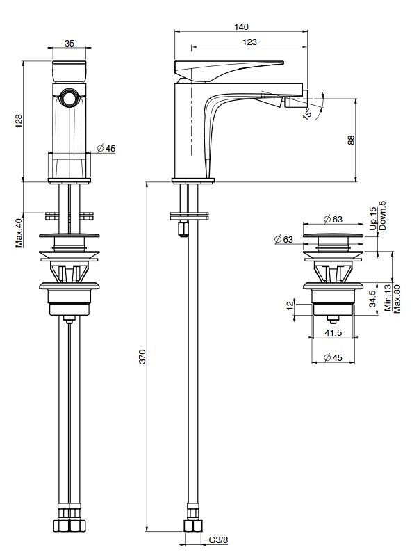 Carlo Frattini Zeta Bateria bidetowa z korkiem Chrom F3962NCR