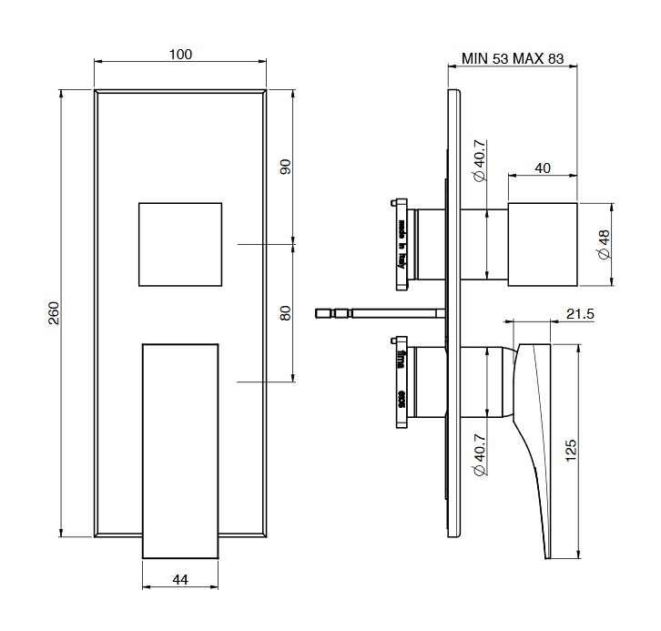 Carlo Frattini Zeta Bateria wannowo-natryskowa podtynkowa z przełącznikiem 2/3 wylotów Chrom F3969X6CR