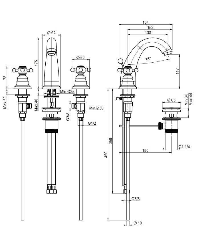 Carlo Frattini Elizabeth Bateria umywalkowa 3-otworowa z korkiem automatycznym Chrom F5101CR