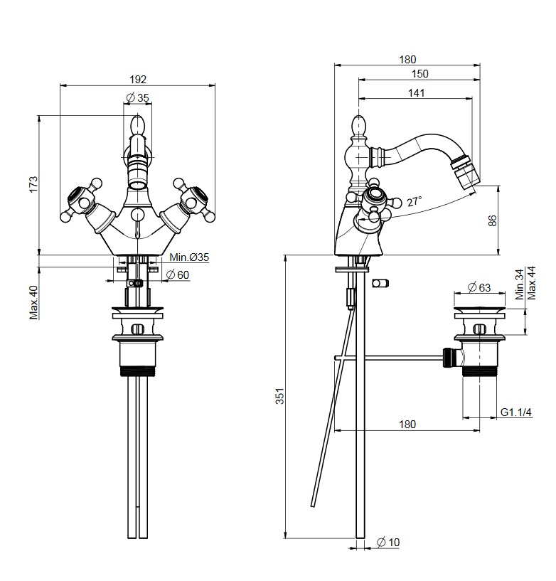 Carlo Frattini Elizabeth Bateria bidetowa jednootworowa z korkiem automatycznym Chrom F5092CR