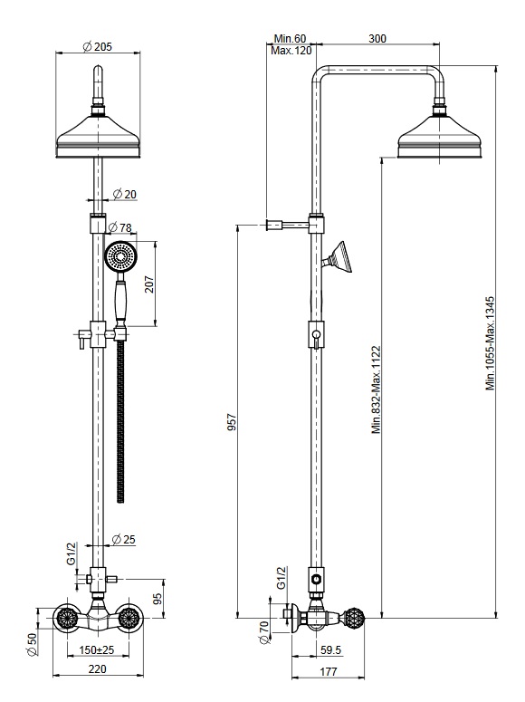 Carlo Frattini Elizabeth Chic Bateria natryskowa z kolumną, słuchawką i zestawem natryskowym Chrom F5085/2CCR